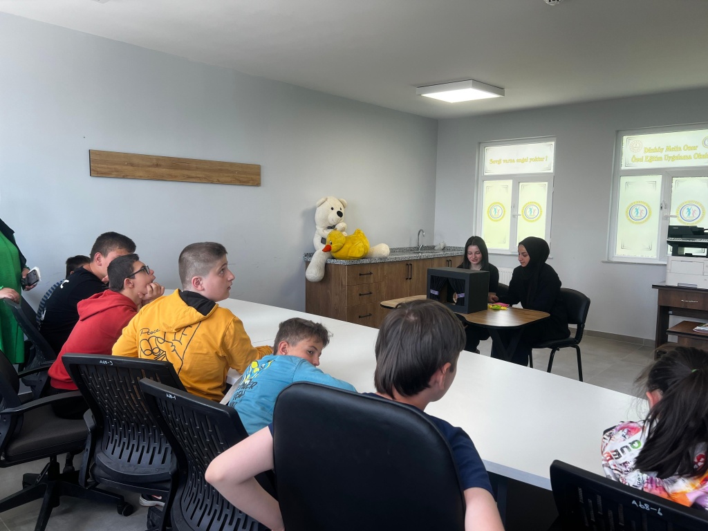 Çocuk Gelişimi ve Eğitimi öğretmeni Fatma Gülay'ın rehberliğinde Çocuk Gelişimi öğrencileri Edanur Çalık, Hümeyra Turali, Elif Kum ve Beren Tayar, Metin Onur Özel Eğitim Okul Müdürü Tarık Akgün'ün daveti üzerine 27 Mayıs Perşembe günü Cevizlik Mahallesi'nde bulunan ilgili okula giderek öğrencilere yönelik çeşitli hikayeleri kuklalar eşliğinde canlandırdılar.