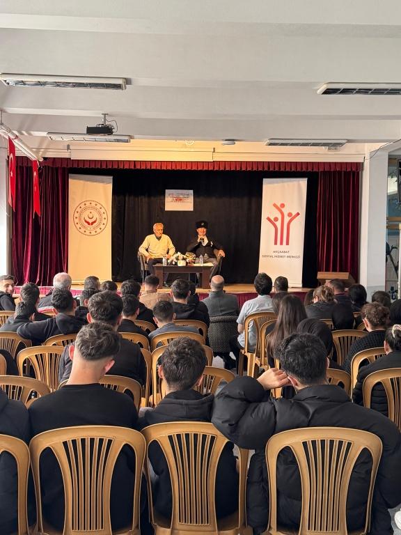 Okulumuzda, Aile ve Sosyal Hizmetler Bakanlığı Akçaabat Sosyal Hizmet Merkezi Şehit Gazi Birimi tarafından “vatan ve kahramanlık buluşmaları” temalı program gerçekleştirildi. Program çerçevesinde Kıbrıs Gazisi Aslan TİRGİL ve şehit yakını Nedim DEMİR misafirimiz oldu. Gazimiz ve şehit yakınımız gençlerimizin milli ve manevi duygularına seslenerek onlarla sohbet etti. Programın sonundaki soru-cevap kısmında öğrencilerimiz, merak ettikleri soruların cevabını gazimiz ve şehit yakınımızdan aldı. Bu içten ve duygusal sohbet için, her şeyden önce bu vatan uğruna yaptıkları mücadele ve fedakarlık için kendilerine teşekkür ediyoruz.